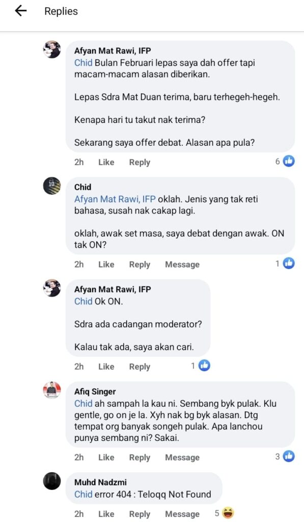 Update: Sdra Chid sudah terima tawaran berdebat.
